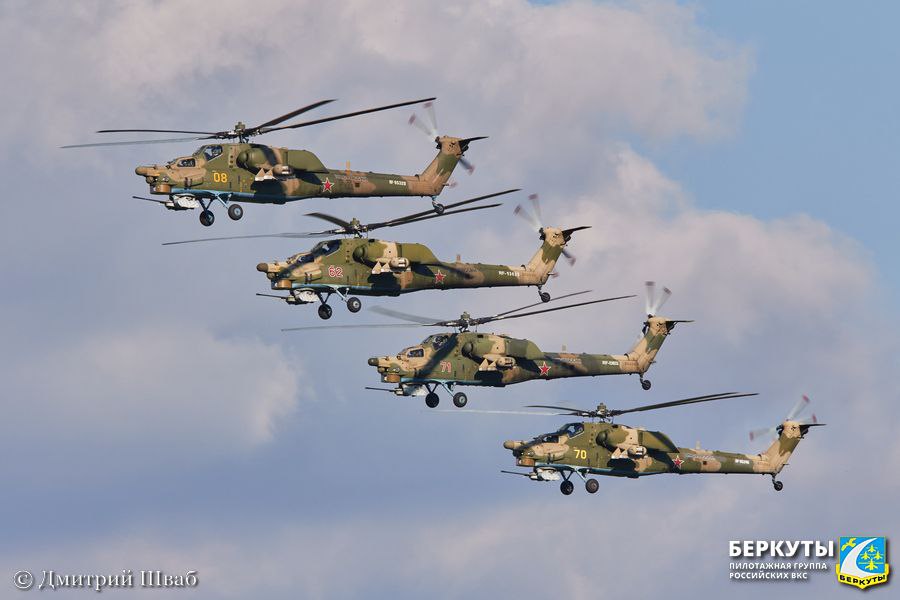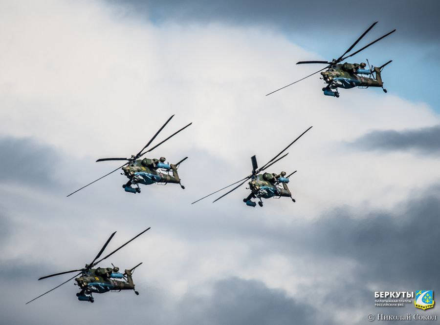 "Беркуты" уже более трёх десятилетий остаются единственной в мире пилотажной группой, выполняющей групповой и одиночный высший пилотаж на боевых вертолётах.